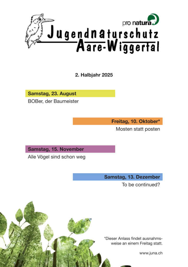 Programm 23. AugustBOBer, der Baumeister 10. Oktober (Freitag)Mosten statt posten 15. NovemberAlle Vögel sind schon weg 13. DezemberTo be continued?
